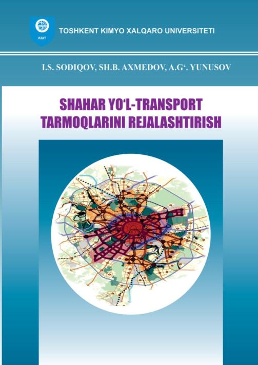 Shahar yo'l-transport tarmoqlarini rejalashtirish. I.S.Sodiqov, Sh.B.Axmedov, A.G.Yunusov. Darslik. T.:“Adast poligraf” nashriyoti, 2022 y., 117 b.