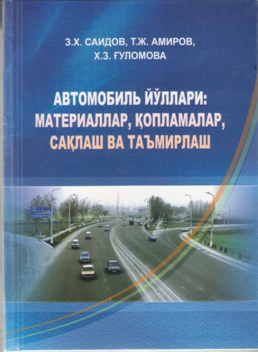 Avtomobil yo'llari: materiallar, qoplamalar, saqlash va ta'mirlash. Z.X.Saidov, T.J.Amirov, X.Z.G'ulomova. O'quv qo'llanma. T.:O'zbekiston Milliy kutubxonasi nashriyoti, 2010 y., 458 b.