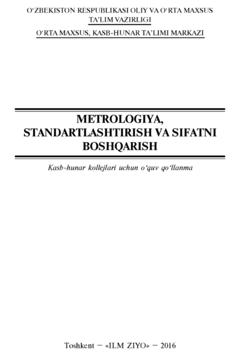 Texnika fanlari doktori, professor I.S.Sodiqov tahriri ostida. Toshkent. 2020 y., 295 b.
