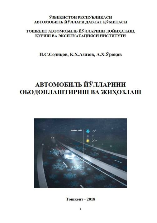 Oliy o'quv yurtlarining "Avtomobil yo'llari va aerodromlar", "Transport inshootlari ekspluatatsiyasi" yo'nalishi bo'yicha ta'lim olayotgan talabalar uchun tavsiya etilgan o'quv qo'llanma.